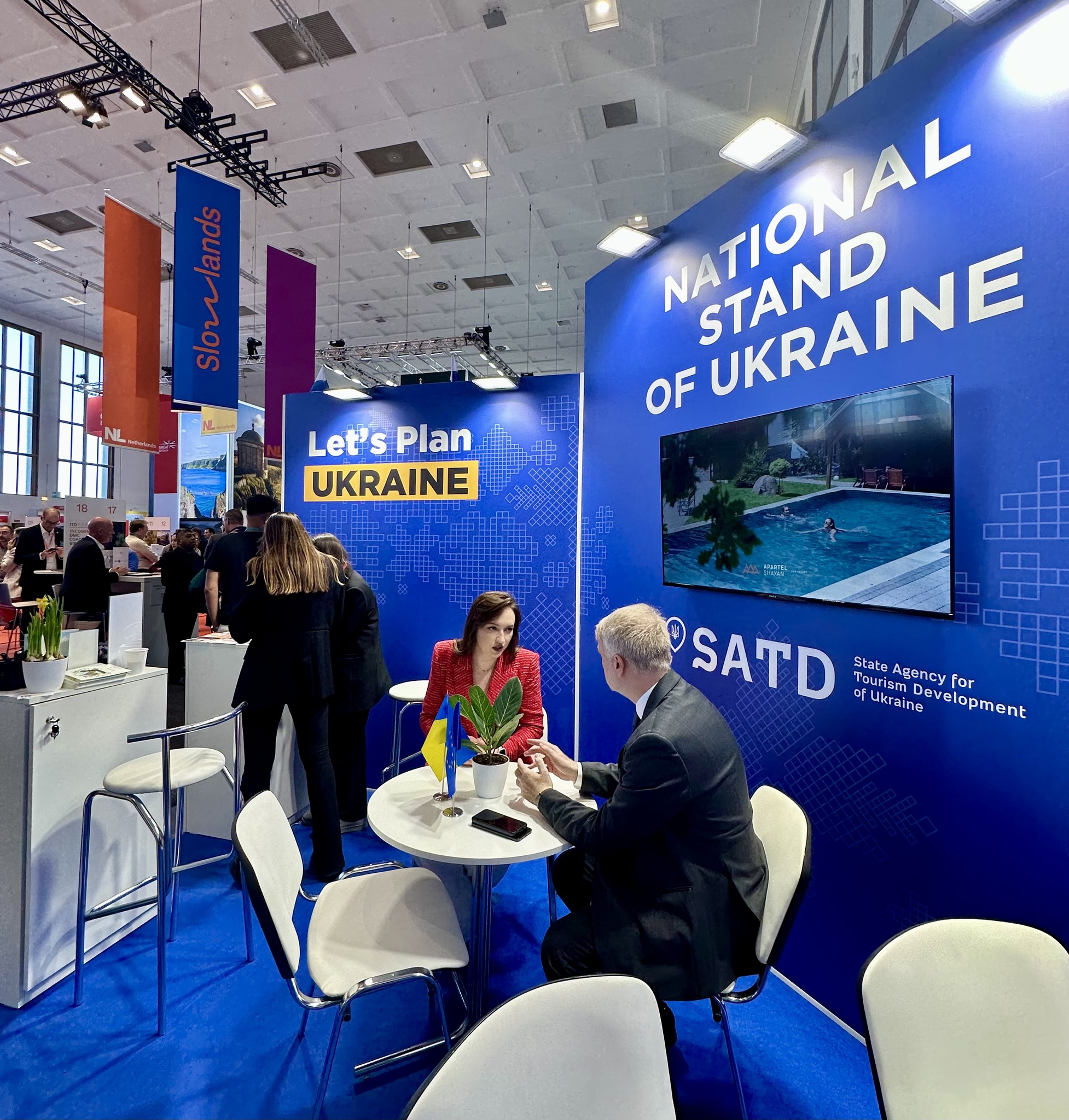 Україна представлена на виставці національним консолідованим стендом під гаслом «Let’s Plan Ukrainе» - це запрошенням міжнародній туристичній спільноті вже сьогодні долучатися до планування майбутнього туризму в Україні.
