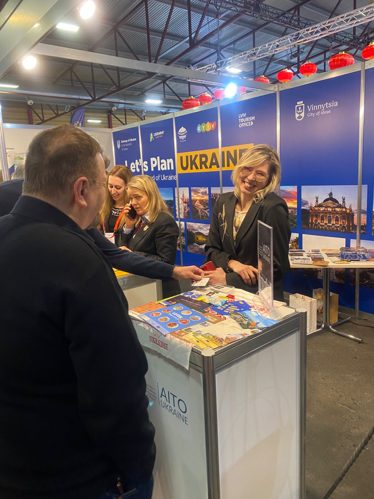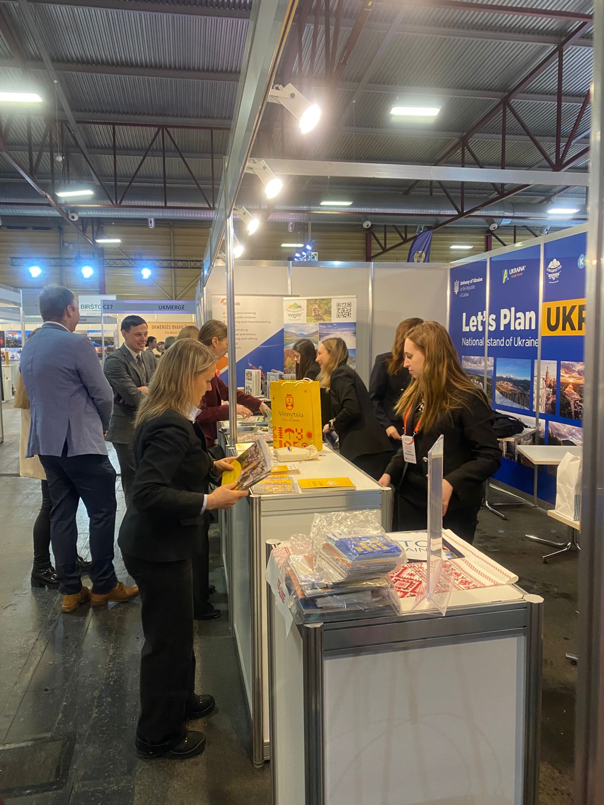 Visitors and exhibition participants are approaching the Ukrainian stand to express their support and solidarity, sharing their profound admiration for the Ukrainian people. They look at photos of Ukrainian landscapes with great interest and promise to visit in the future. They are—truly—planning Ukraine.