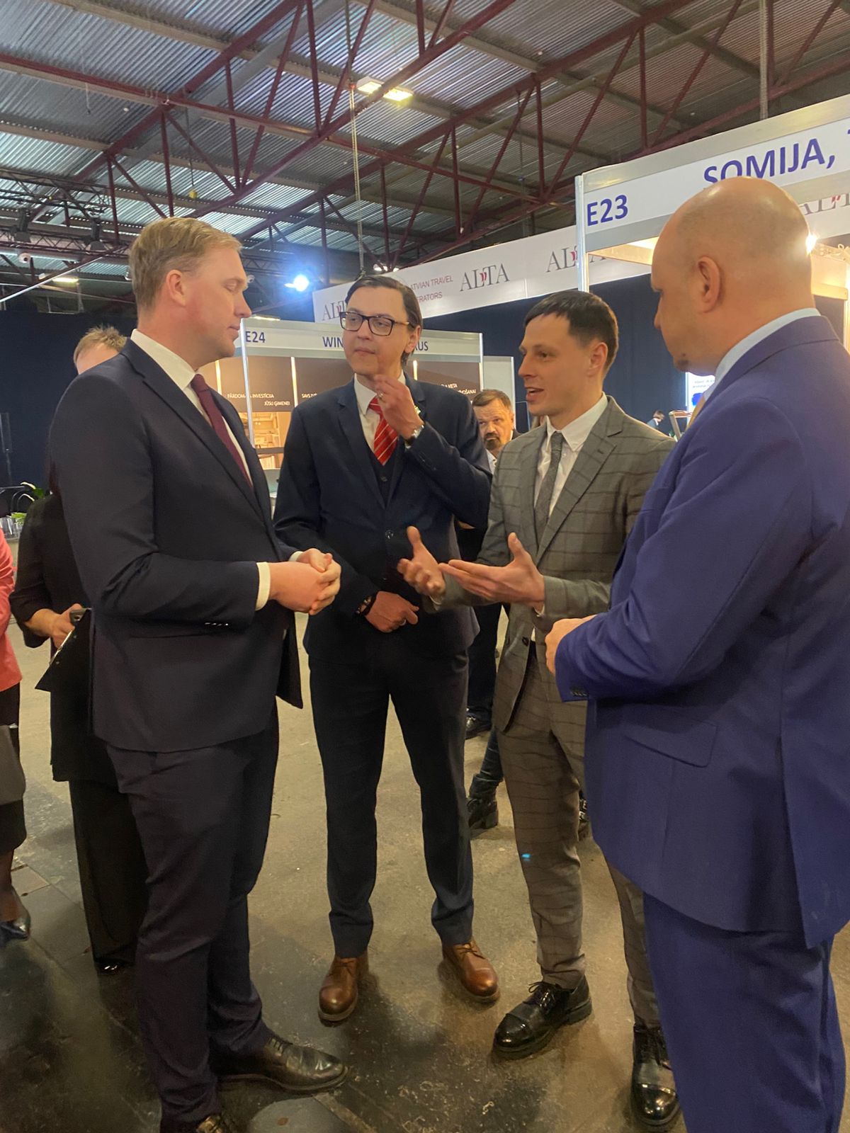 To meet the Ukrainian delegation at the Balttour 2026 fair, the Minister of Economics of the Republic of Latvia, Viktors Valainis, and the Chargé d'Affaires of Ukraine in Latvia, Yurii Zakharchuk, visited the stand. They expressed their solidarity and readiness to support Ukraine.