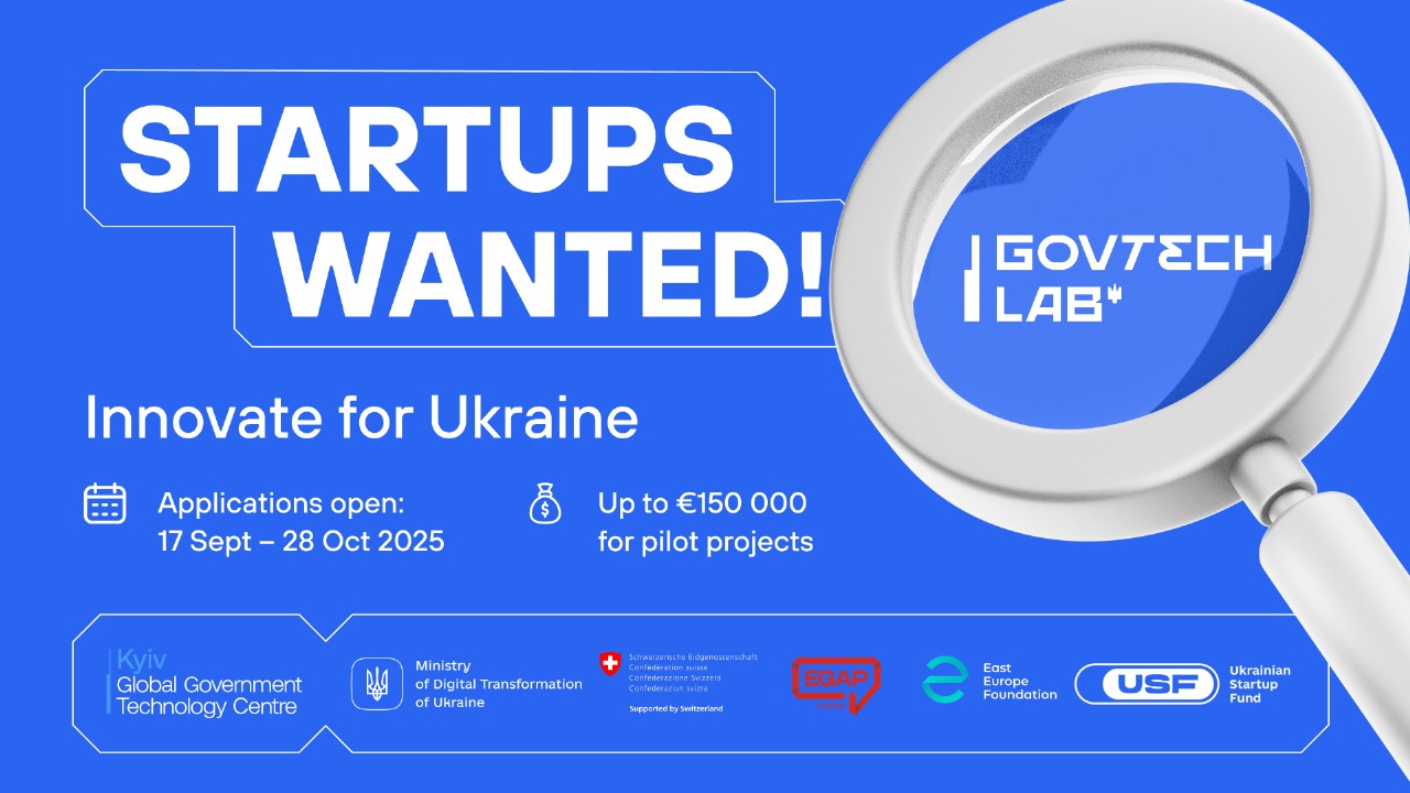 The open innovation program GovTech Lab Ukraine has launched a competition for startups and IT companies that can propose innovative solutions in the field of public services. Selected teams will receive: